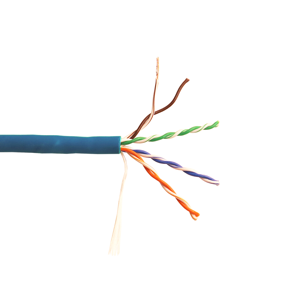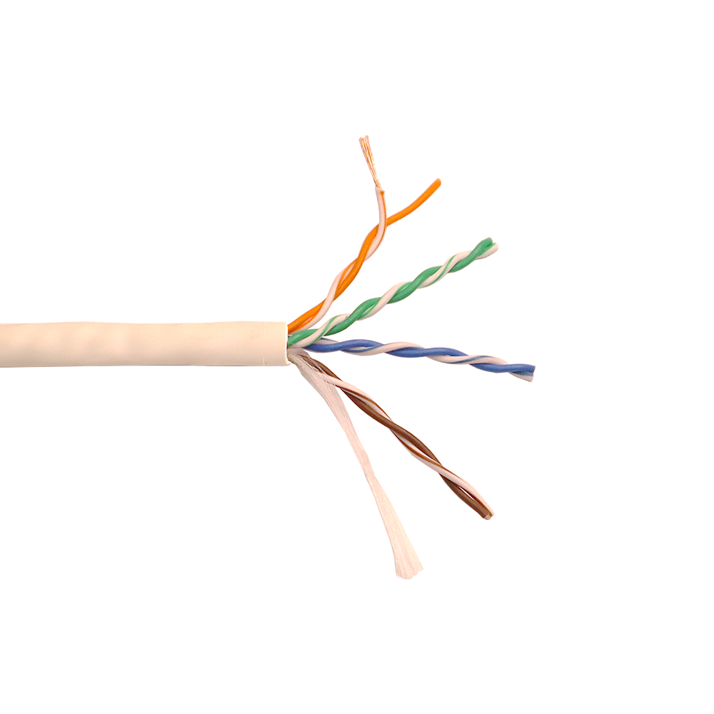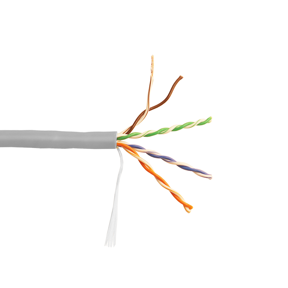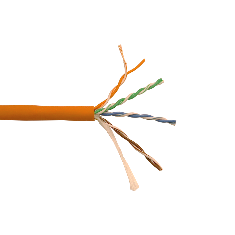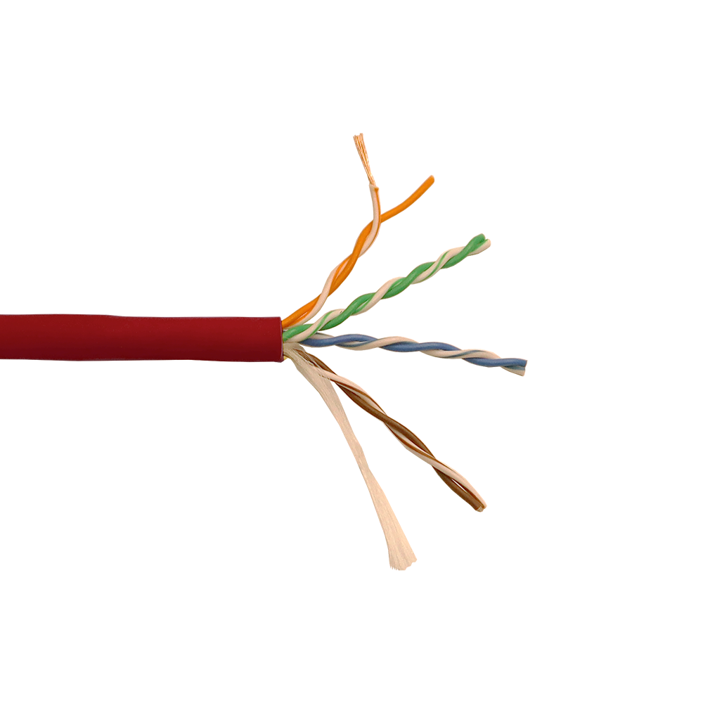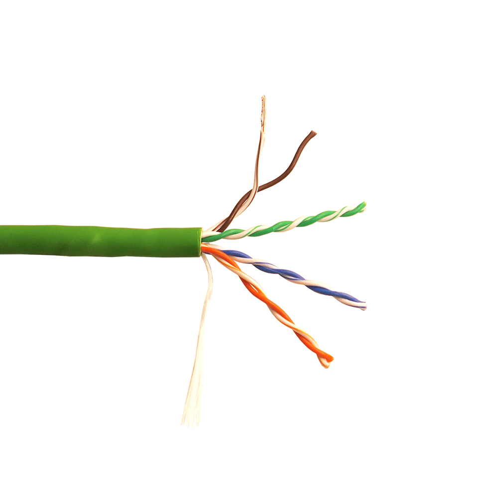 Two conductors stranded with a specially selected step make up one twisted pair. 4 twisted pairs are wrapped with a LSZH (low smoke, zero halogen) sheath.