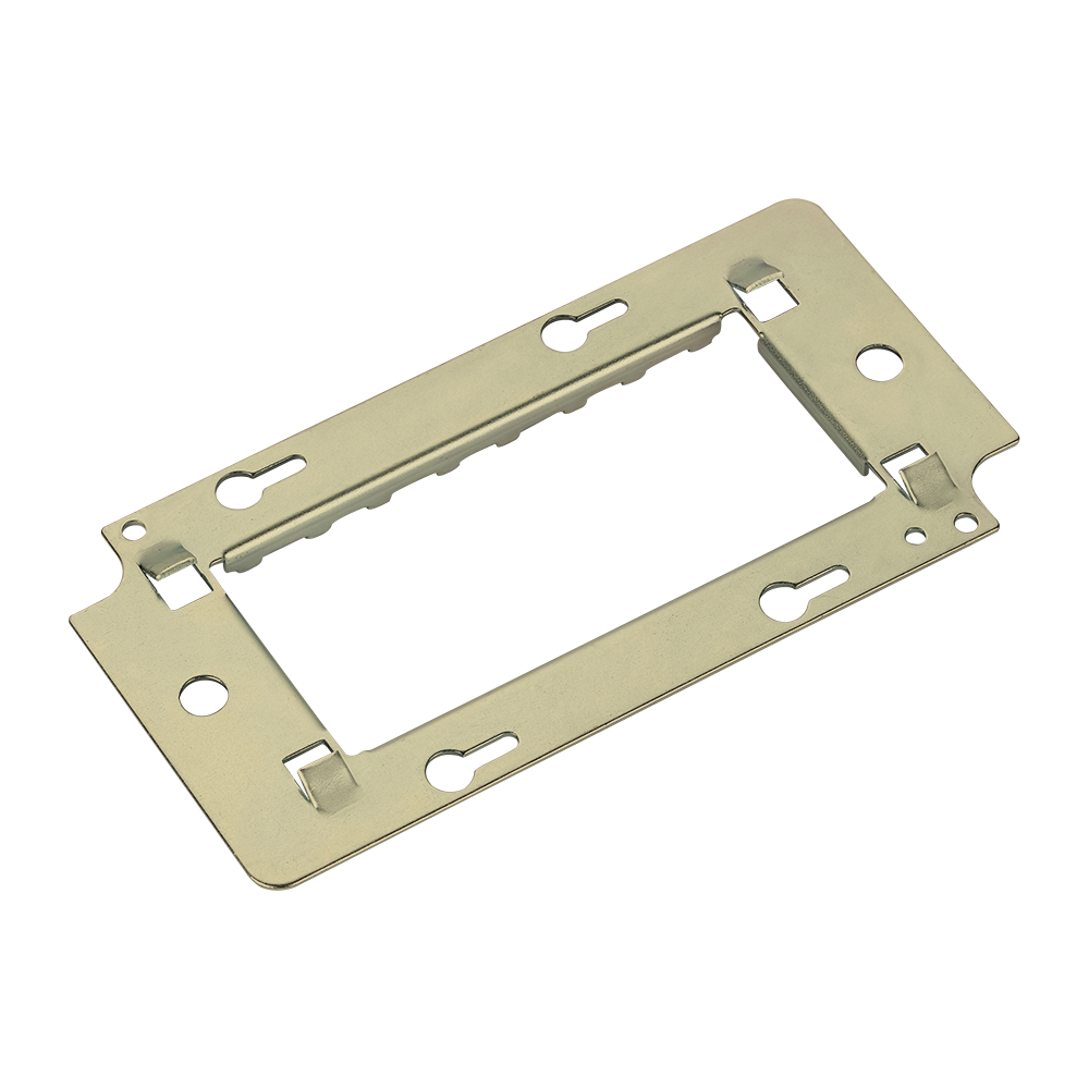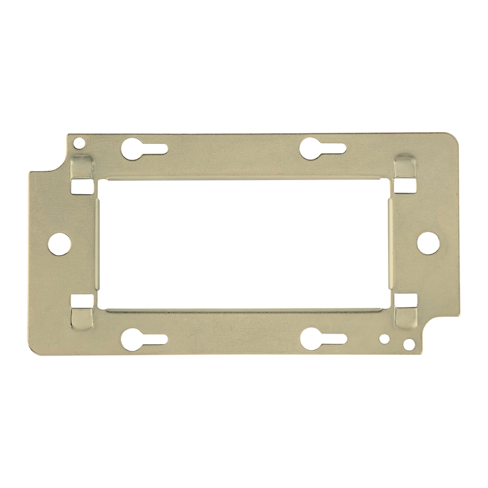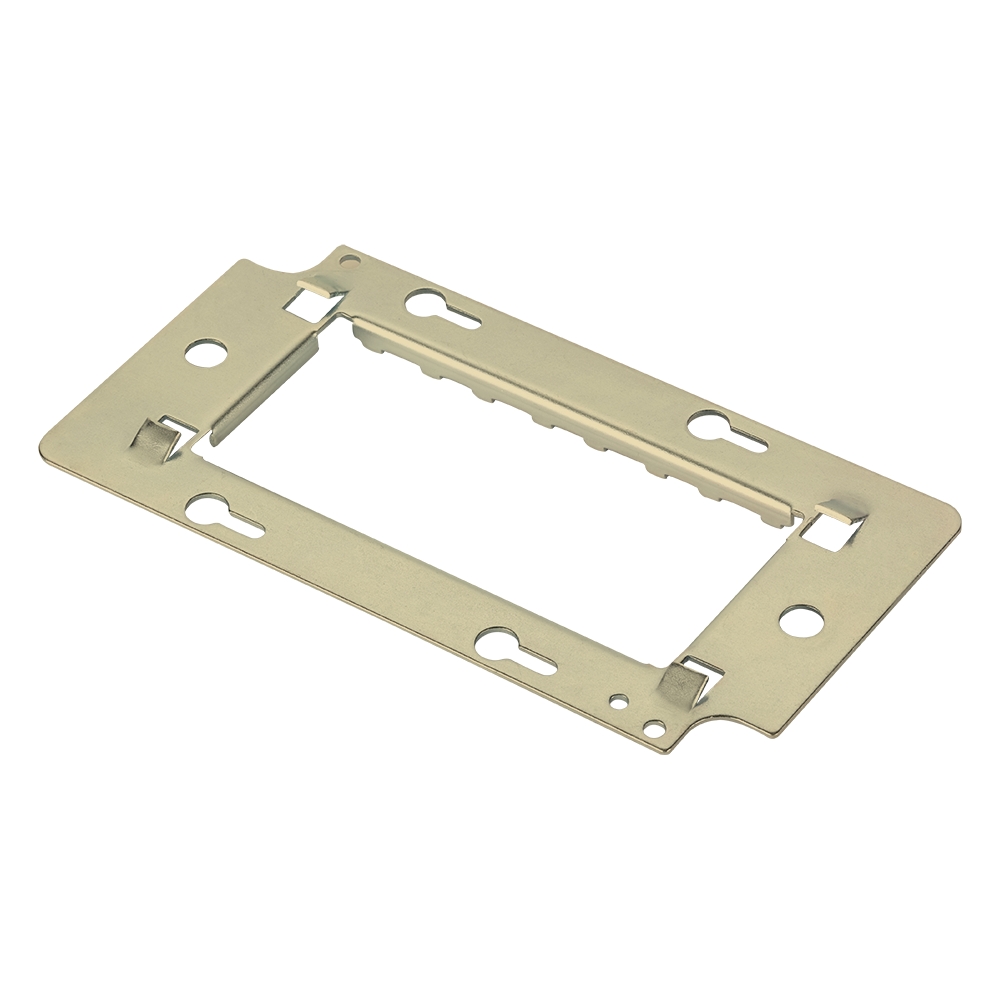 Metal mounting frames for Mosaic series wiring accessories and data sockets of the same standard size. Designed to install on Mosaic flush and wall mounting boxes with appropriately sized faceplates. Available in three basic sizes – 45x45, 45x90, and 45x135. Made of steel. For options of using this product see document: Typical assemblies of data sockets with LANMASTER and TWT components |