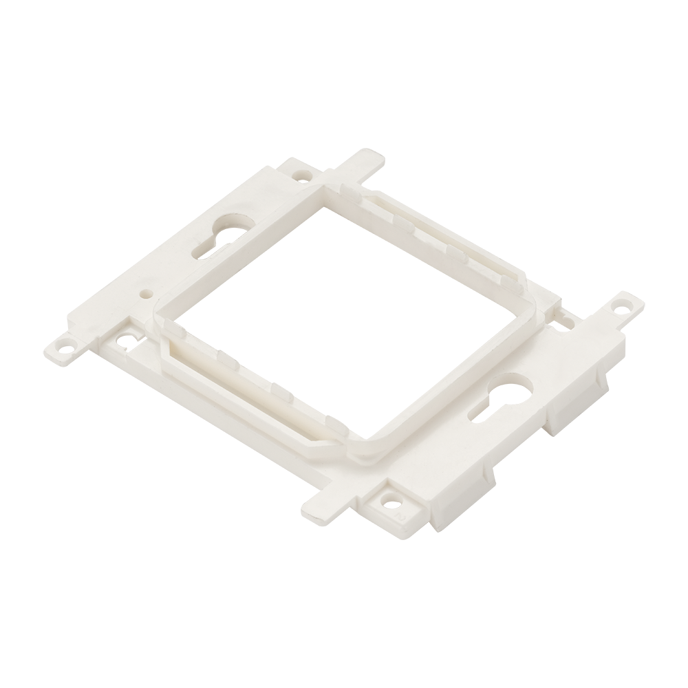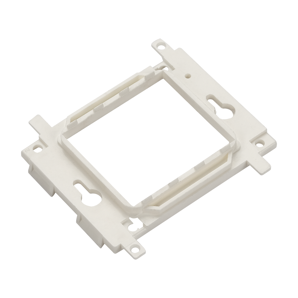 Plastic mounting frames for Mosaic series wiring accessories and data sockets of the same standard size. Designed to install on Mosaic flush and wall mounting boxes with appropriately sized faceplates. Available in three basic sizes – 45x45, 45x90, and 45x135. Made of ABS. Color is white (RAL 9010). For options of using this product see document: Typical assemblies of data sockets with LANMASTER and TWT components. |