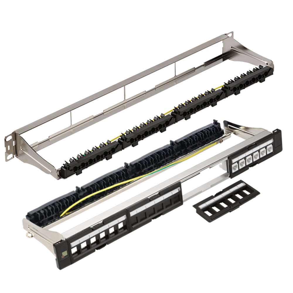 Наша модульная коммутационная патч-панель LAN-FRM-PP-STP/1U давно заслужила доверие специалистов. Её удачная конструкция высотой 1U с четырьмя универсальными слотами позволяет комбинировать медные и оптические модули разных категорий в любой конфигурации, создавая подходящее решение для любой задачи. А фронтальные вставки с безинструментальной фиксацией позволяют выполнять монтаж и обслуживание с лицевой стороны панели.